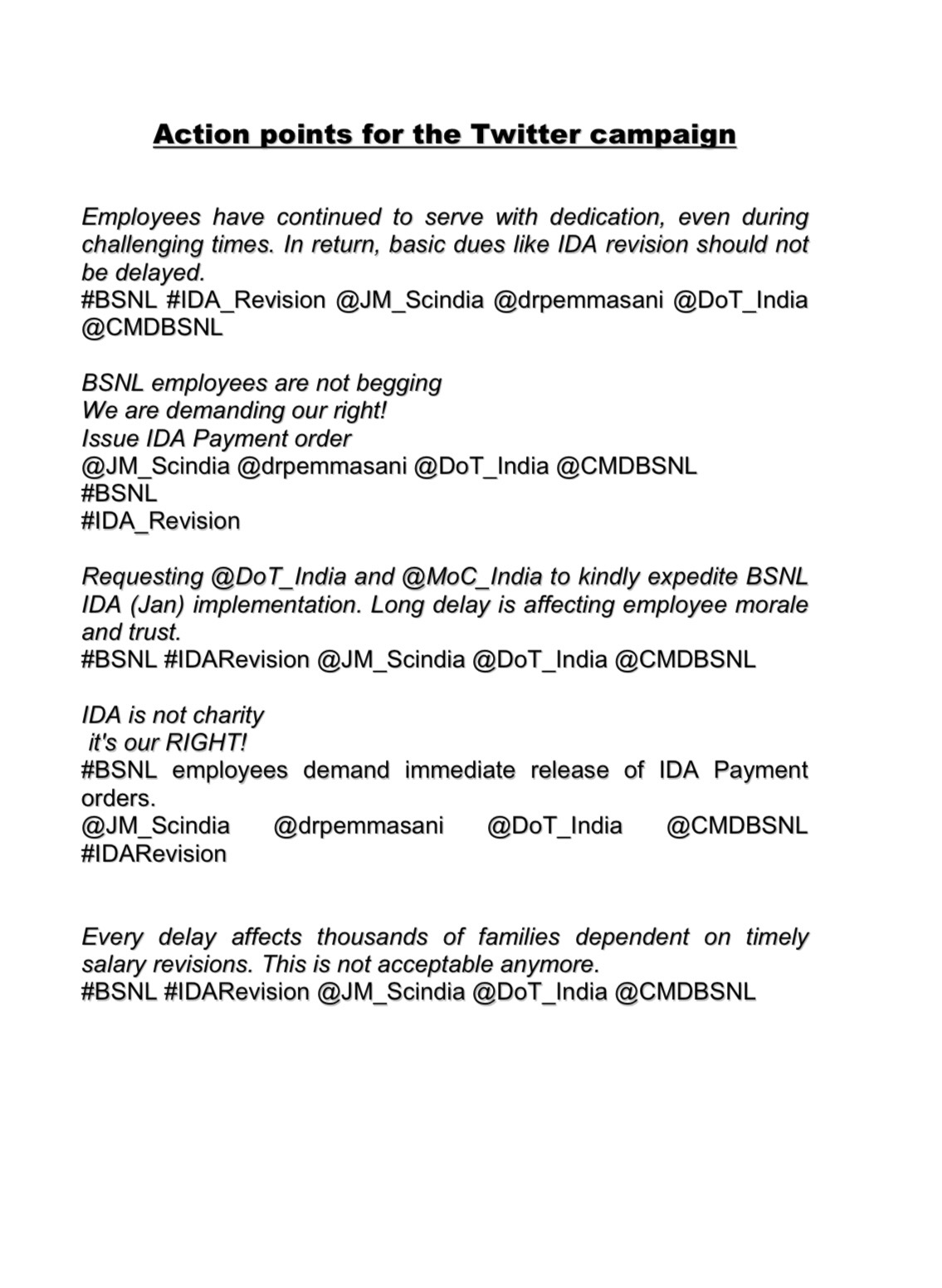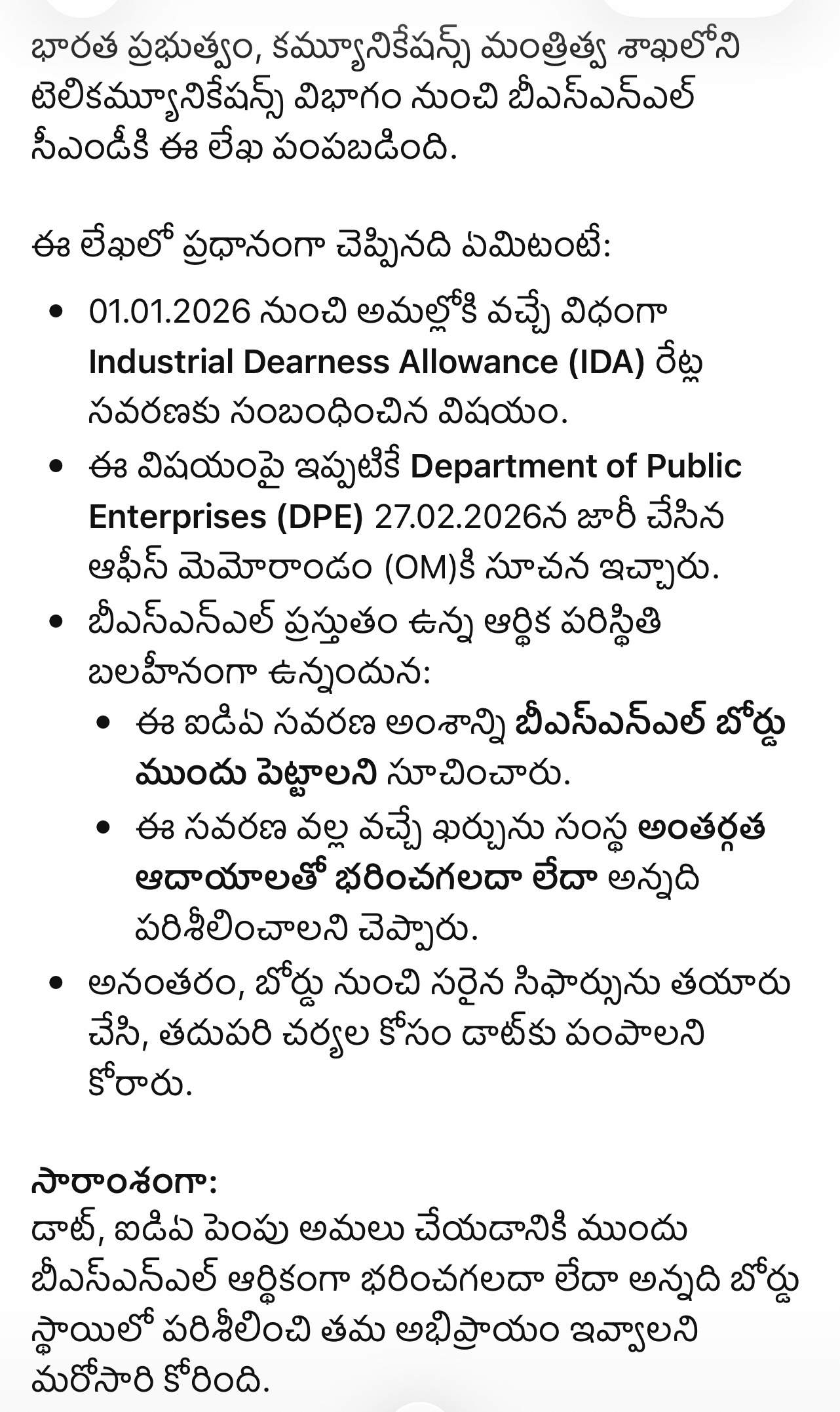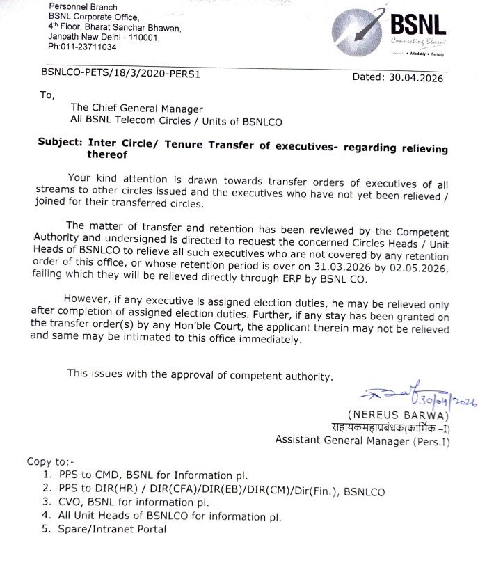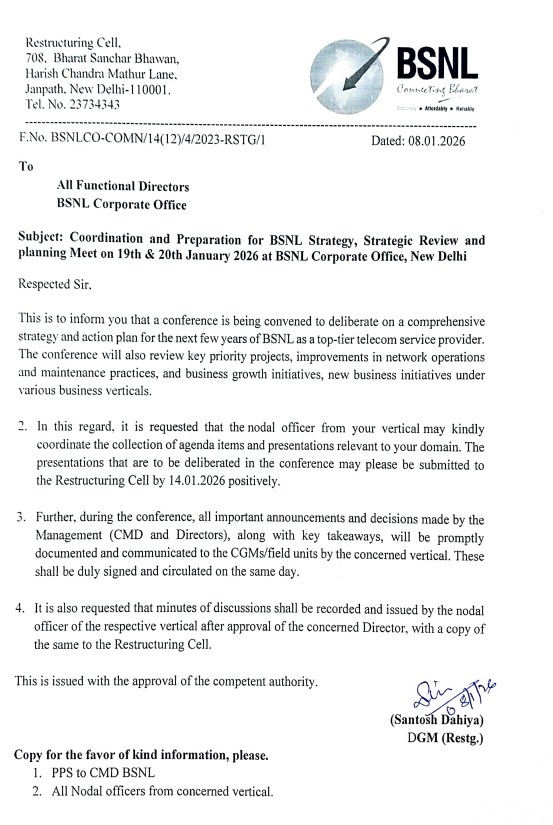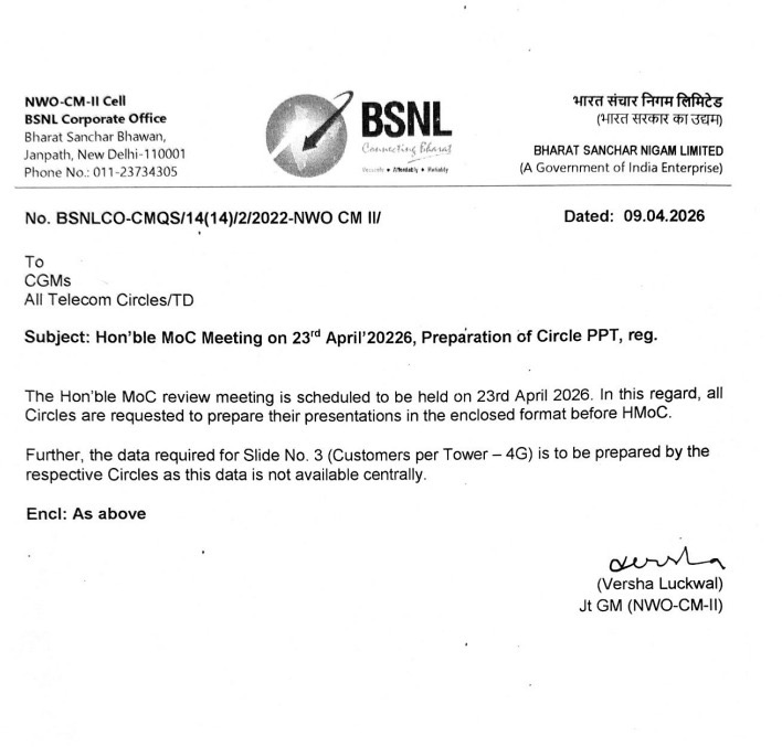 BSNL management pleaded for implementation of 3rd PRC with 15% fitment. Response of Secretary was positive but made certain important queries how BSNL is going to meet the additional expenditure of about Rs 2500 Cr. After implementation, taking bank loan and making payment like MTNL is not advisable, Secretary informed. BSNL should be able to meet the additional expenditure and come out with proposal how to meet the additional expenditure from internal recourses after implementation of 3rd PRC, Secretary directed BSNL. BSNL told Secretary that it will work out the details and submit it at the earliest.