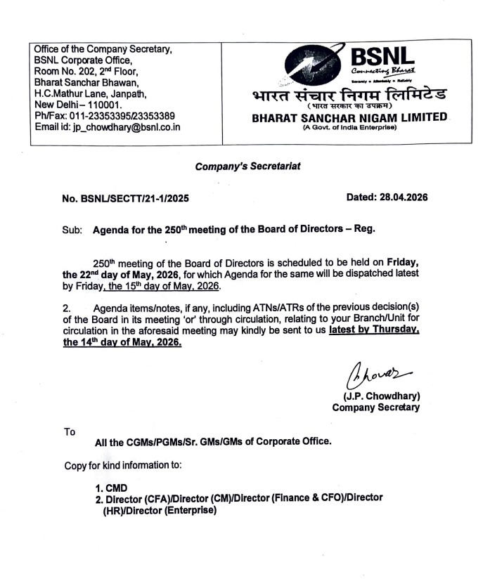 BSNL management pleaded for implementation of 3rd PRC with 15% fitment. Response of Secretary was positive but made certain important queries how BSNL is going to meet the additional expenditure of about Rs 2500 Cr. After implementation, taking bank loan and making payment like MTNL is not advisable, Secretary informed. BSNL should be able to meet the additional expenditure and come out with proposal how to meet the additional expenditure from internal recourses after implementation of 3rd PRC, Secretary directed BSNL. BSNL told Secretary that it will work out the details and submit it at the earliest.